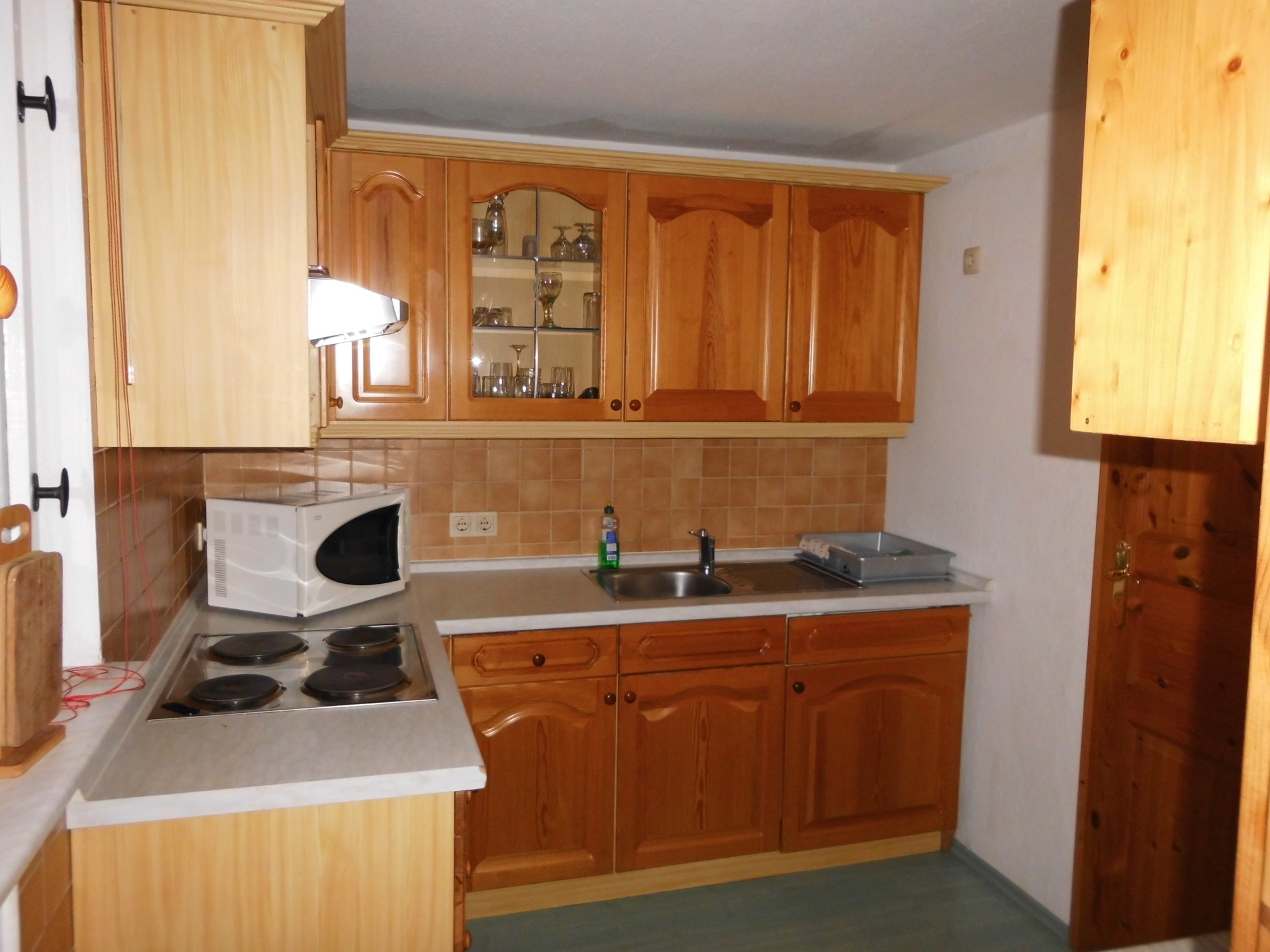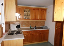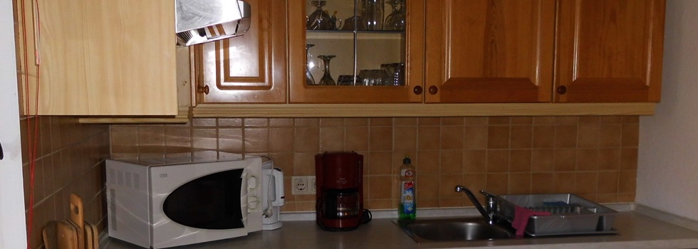 Ausstattung: Kühlschrank, E-Herd, Dunstabzugshaube, Mikrowelle